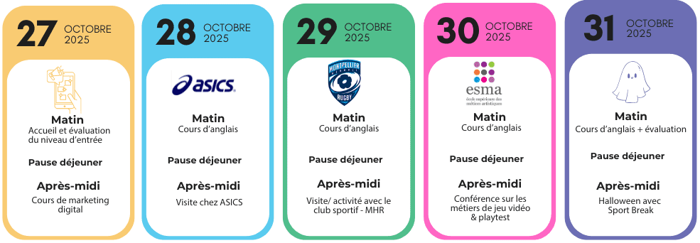 1 semaine pendant les vacances (du 27 au 31 octobre 2025)